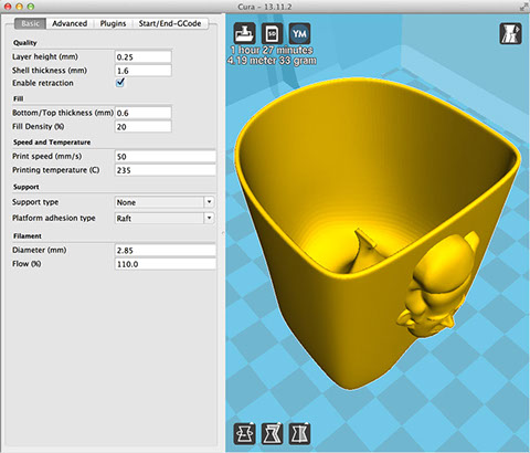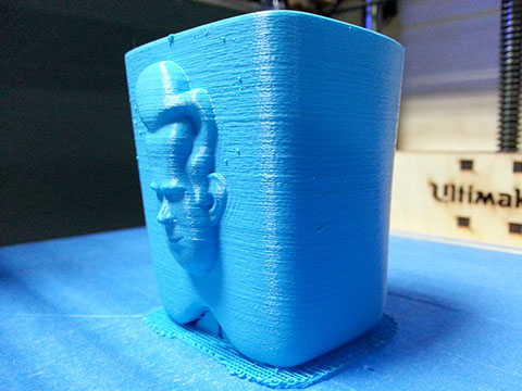 A 'mini mug shot' just finished printing on an Ultimaker, ready for clean-up!