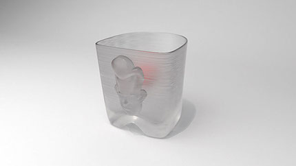 Visualisation of 'mini mug shot' with a glacier cherry inside in natural transluscent PLA